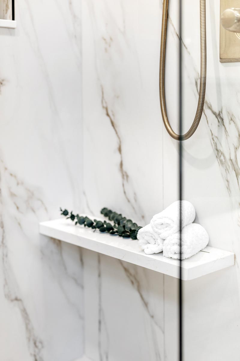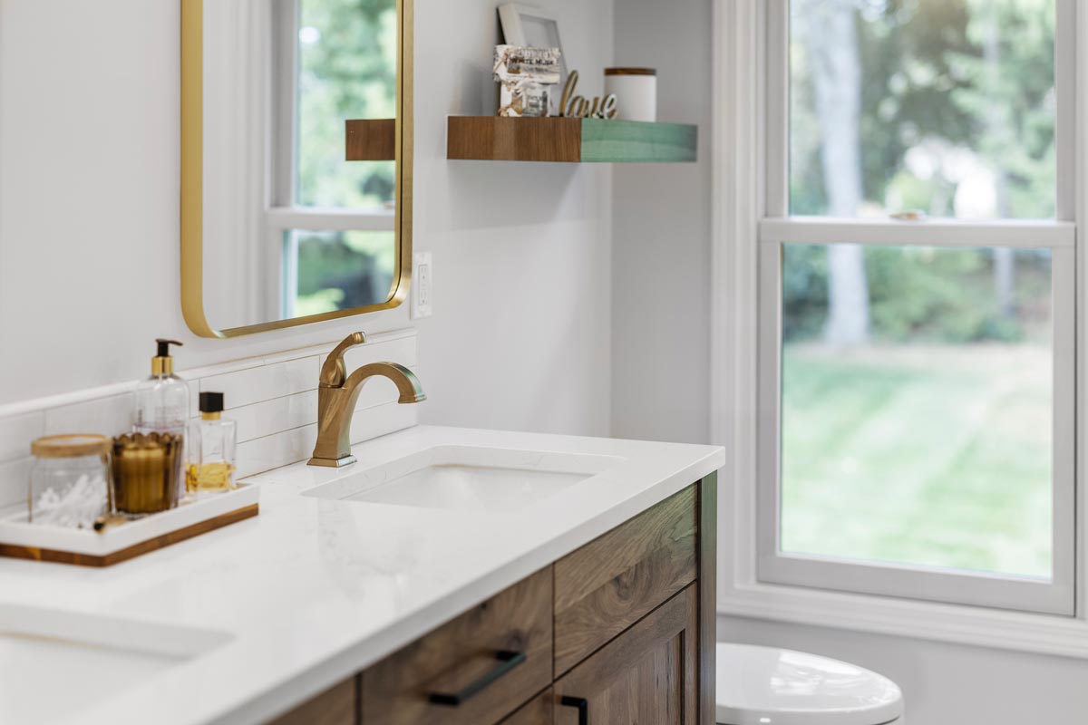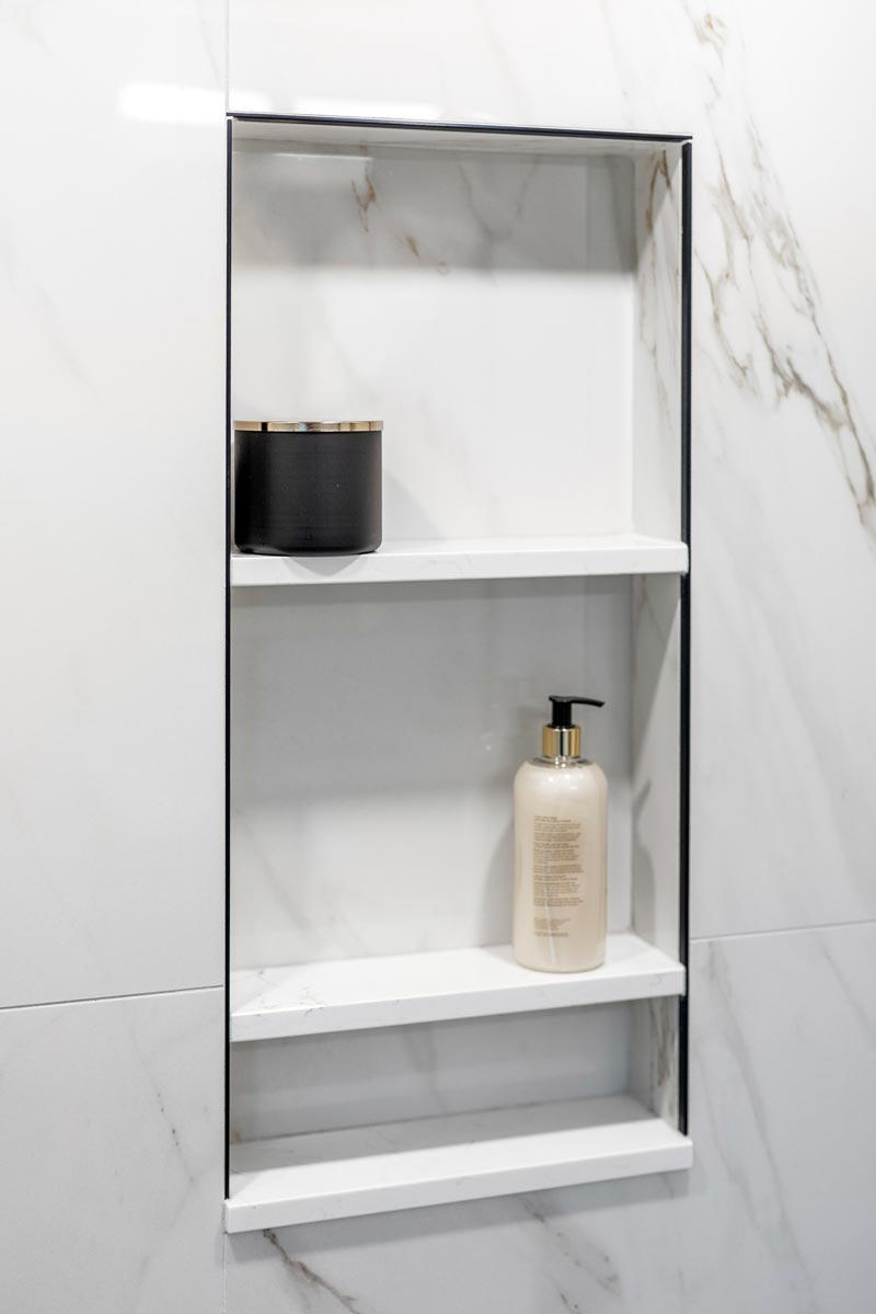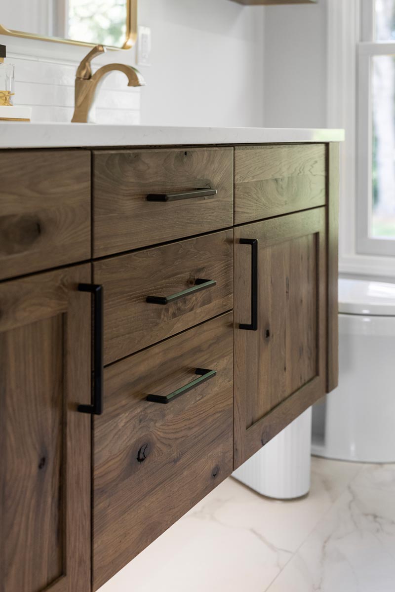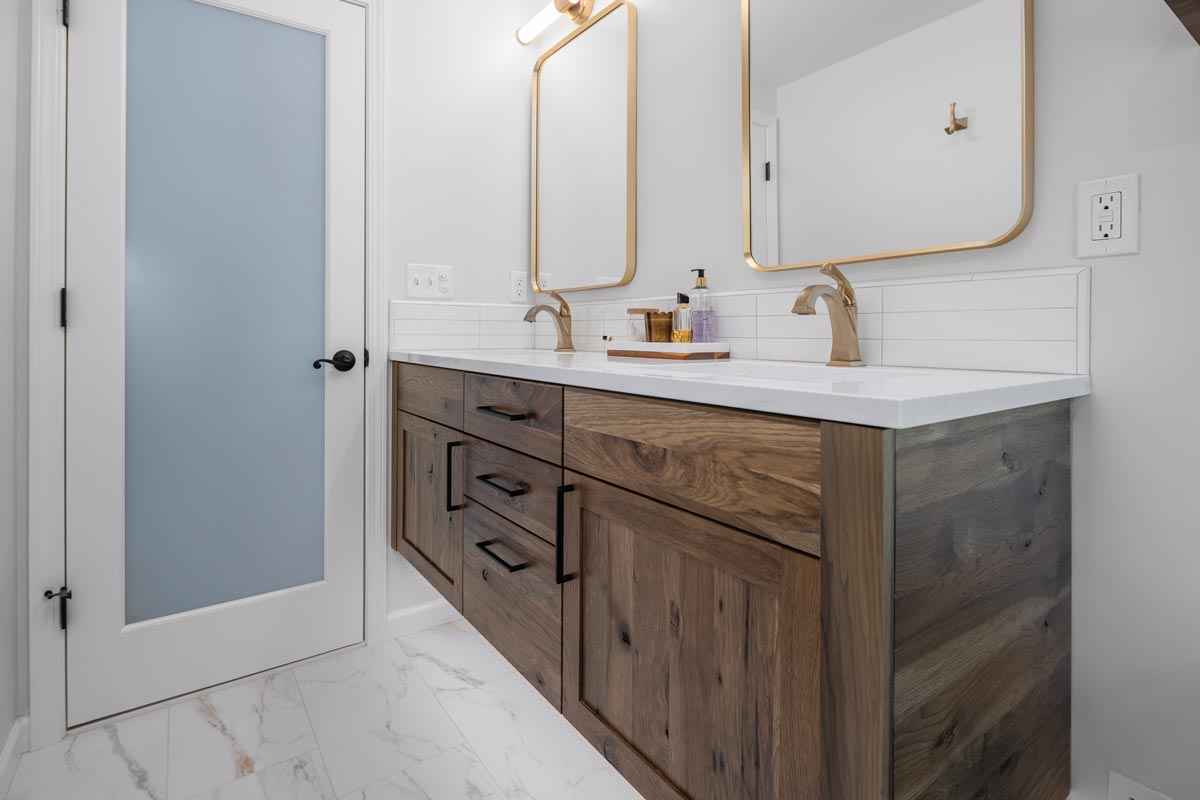 This completed bathroom renovation brings a refined balance of modern design and everyday comfort. Soft neutral tones, warm wood textures, and clean architectural lines come together to create a space that feels calm, cohesive, and timeless. Every element—from the custom vanity and lighting to the detailed tilework — was selected to enhance both beauty and function for the homeowners.